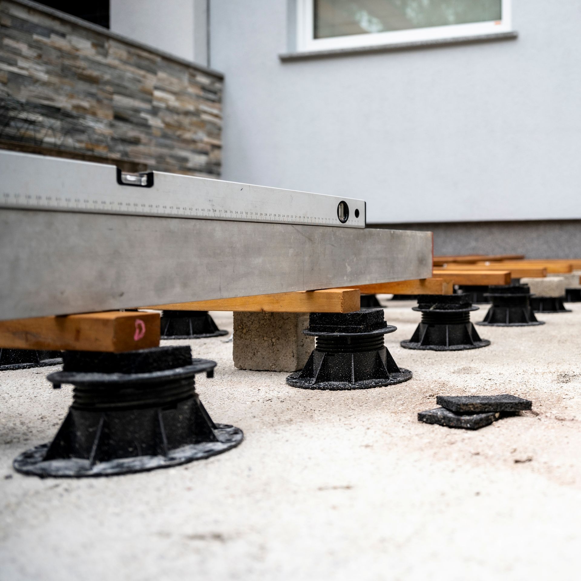 Se asigură o suprafață plană și stabilă, cum ar fi o placă de beton sau o hidroizolație corect executată, care să permită montajul suporților reglabili. - Așezarea suporților: