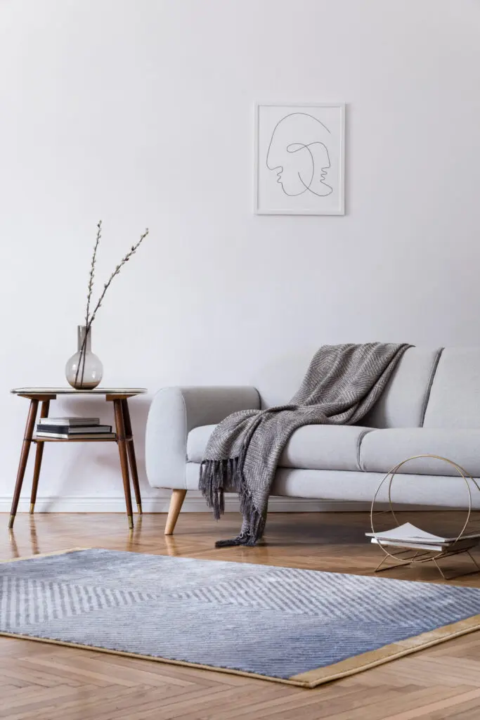 Fie că vorbim de design-ul de piatră tip limestone, ceppo, cementino, terazzo sau granit, textura pietrei în tonuri de gri în combinație cu plăcile ceramice cu design tip lemn creează design-ul perfect pentru un living în 2025.